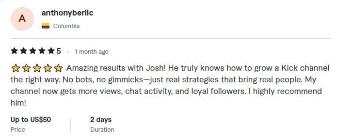 Amazing results with Josh! He truly knows how to grow a Kick channel the right way. No bots, no gimmicks just real strategies that bring real people. My channel now gets more views, chat activity, and loyal followers. I highly recommend him!
